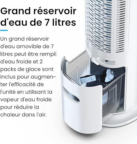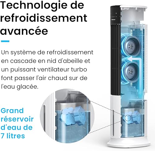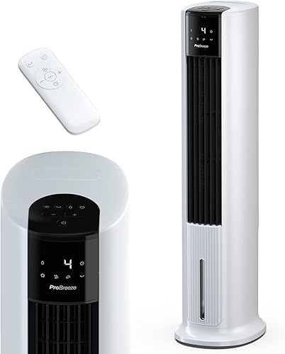 Pro Breeze® Refroidisseur d'air par évaporation 4 en 1 7 L et ventilateur tour portable de 106,7 cm, 3 vitesses de ventilateur, télécommande, oscillation automatique, minuterie de 10 heures et