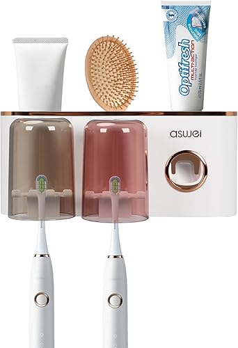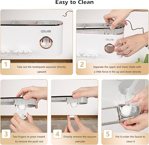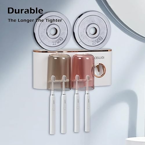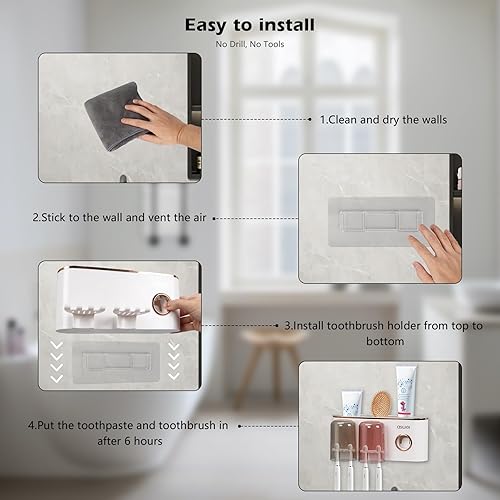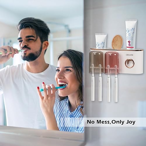 Porte Brosse à Dents Mural, Distributeur Automatique de Dentifrice, Rangement Brosse a Dent, Multifonction Support Brosse a Dent pour Salle de Bain avec 8 Fentes pour Brosse à Dents