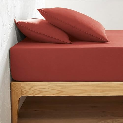 Drap Housse 140X190 CM 100% Coton 4 Coins élastiques (Terracotta, 140X190)