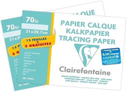 Clairefontaine 196853AMZC - Un lot de 2 pochettes de Calque supérieur 15 feuilles (12 + 3 gratuites) 21x29,7 cm 70/75g