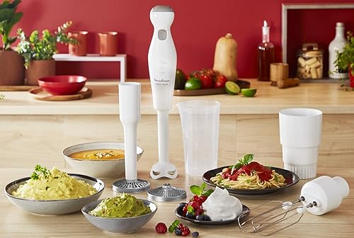 Moulinex Mixeur à main Robot Marie mixeur 450 W 2 vitesses fonction TURBO mixeur plongeant 2 lames inox longue durée presse-purée double fouet filtre à coulis mixeur soupe réparable 10 ans DDG25110