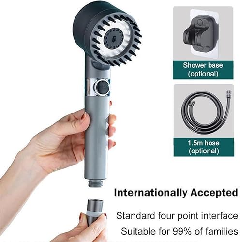 Duschely Pommeau de douche filtré, portable haute pression, 3 types de jet, avec filtration efficace des métaux lourds, gris, 5 éléments filtrants