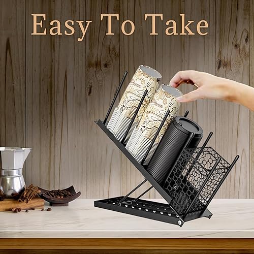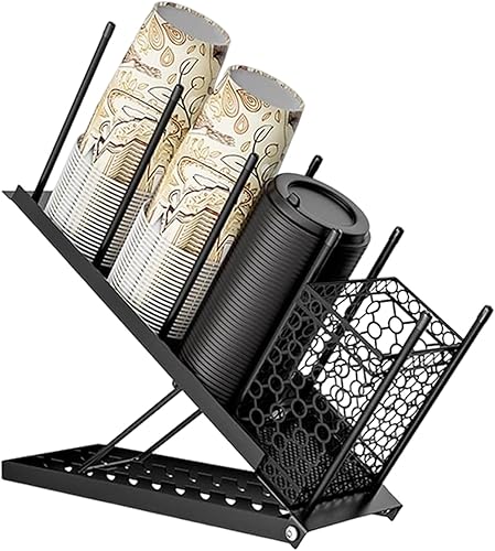 Tefola Organisateur de café, distributeur de tasse jetable, porte-gobelet en papier pour maison, cuisine, bureau, cafétéria, bar (noir)