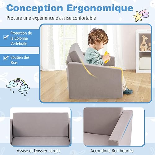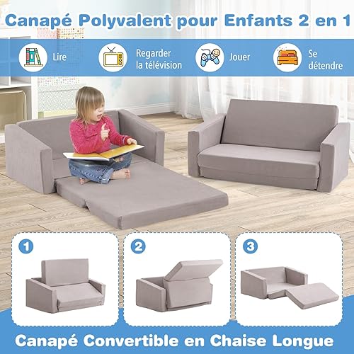 DREAMADE 2 en 1 Canapé-lit Enfants avec en Flanelle Textile Dossier Ergonomique,Fauteuil Convertible Enfant 18-36Mois avec Housse Amovible&Mousse Haute Résilience,Charge 50KG (Kaki, 77x43x40cm)