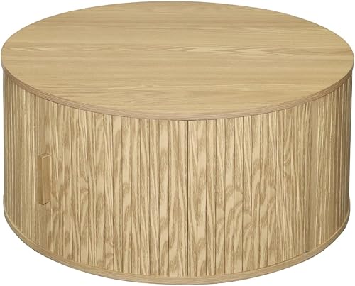 Calicosy - Table Basse Ronde avec Rangement D75 cm - Collection Ernest - Design Vintage et Pratique - Meuble de Salon Élégant en MDF