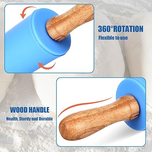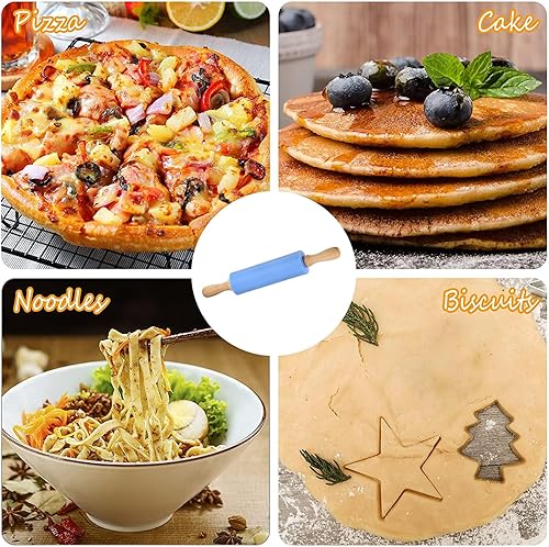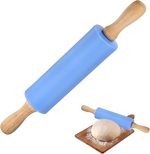 YALiya Rouleau a Patisserie en Silicone, Rouleau à Pâtisserie avec Poignées en Bois, Antiadhésif Surface, 31CM×4,2CM, pour la Cuisson de Pizzas, Pate, Gateau, Pâtes