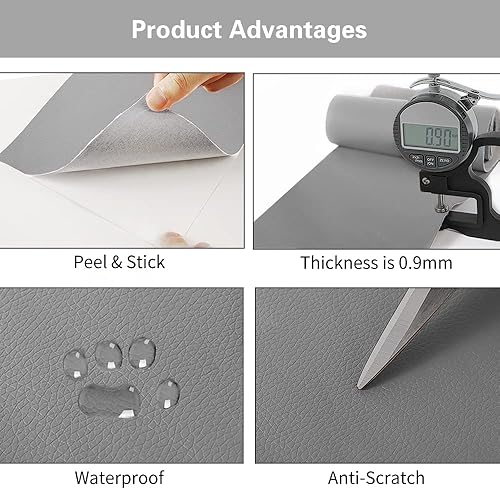 Cahomo 40x160cm Patch de Réparation en Cuir, Papier Peint Auto-Adhésif en Cuir PU Patch de Réparation Kit Premiers Soins pour Canapé de Siège de Voiture Meubles Vestes Sac À Main Gris