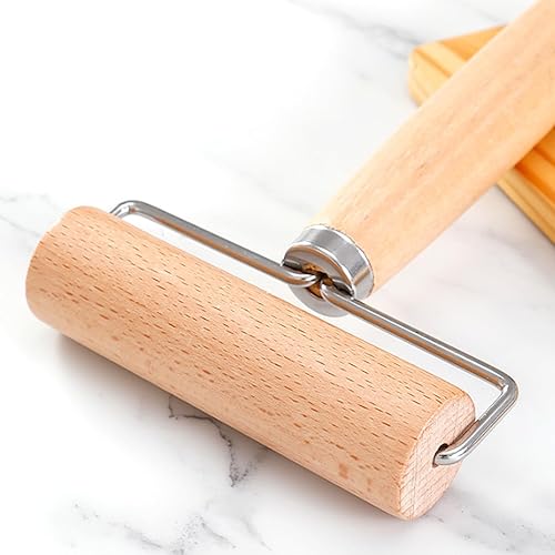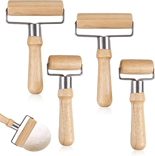 Lot de 4 rouleaux à pâtisserie en bois de hêtre - Petit et moyen - 6,5 x 17 cm et 10,5 x 17,8 cm - En bois de hêtre - En forme de T - Pour gâteaux, pizzas, fondants, cookies (couleur bois)