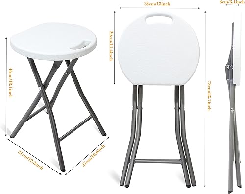 Todeco Tabouret Pliant Lot de 4 avec Poignée Plastique,Tabouret de Salle de Bain,Tabouret Pliant Extérieur pour Jardin,Camping,Tabourets de Salon Pliant,Charge Maximale: 300 kg,33x29x46cm,Blanche