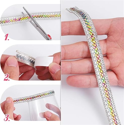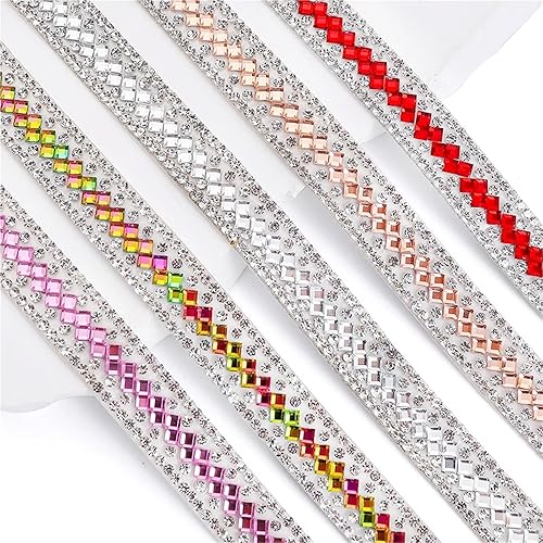 Ruban En Strass Lot de 3 rubans adhésifs en strass for décoration de vêtements, chaussures, sacs et robes(12mm red)