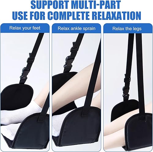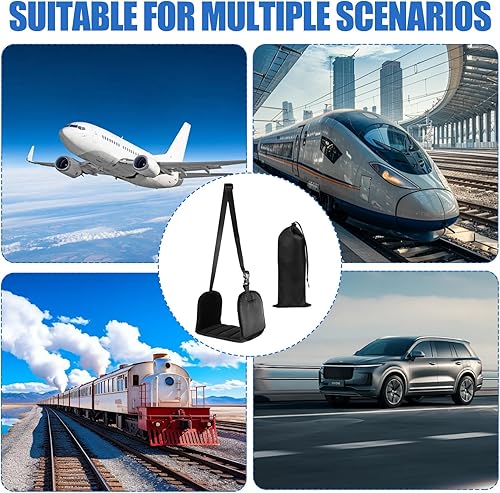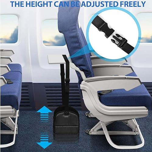 Repose Pied Avion Réglable, Repose-Pieds Portable en Mousse Mémoire de Forme, Hamac de Repose-Pieds Suspendu Pliable avec Masque & Bouchons d'Oreille Confort Maximal pour Avion Bureau Voyage(Noir)