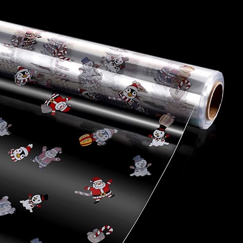 Toddmomy Rouleau Demballage en Cellophane Transparent EmballageCadeau Motif Père Noël Papier Demballage en Cellophane de 3 Mil Dépaisseur pour Cadeaux de Noël Paniers Fleurs Nourriture