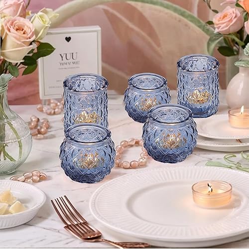 Lot de 12 bougeoirs en verre assortis pour fête prénuptiale, centre de table de mariage, décoration d'intérieur (12, bleu)