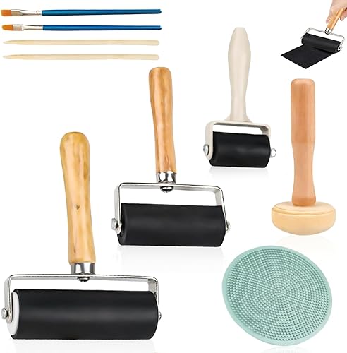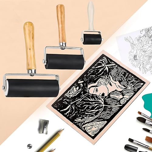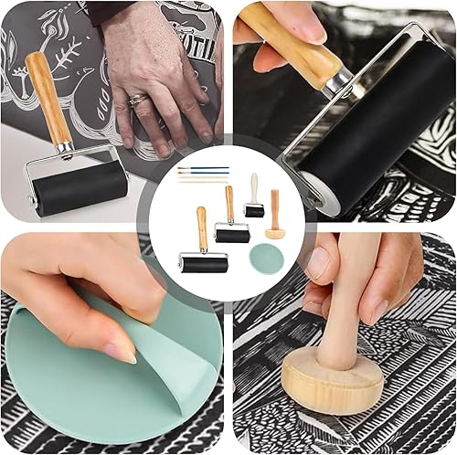 WIYETY Kit de Rouleau en Caoutchouc: Kit d'impression avec Rouleau Presseur, Rouleau en Caoutchouc Robuste avec 1 Rouleau Champignon et 1, pour Graphiques d'impression, Tampons d'impression Bloc