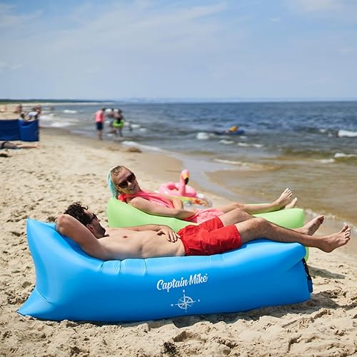 Captain Mike Canapé gonflable sans pompe - Chaise longue de plage - Pliable et portable - Sac à dos inclus - 190 x 70 cm - Pour plage, jardin, voyage, camping (bleu)