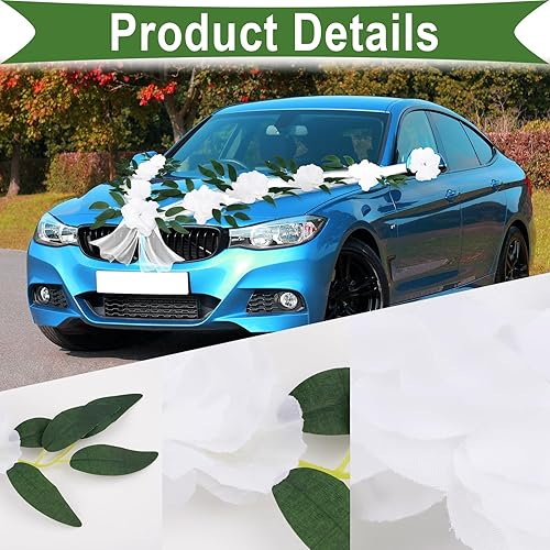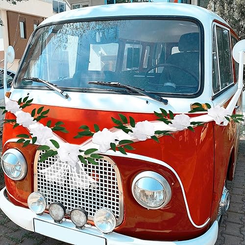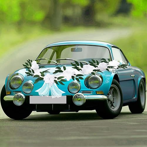 Décoration Voiture Mariage de Tulle Kit Deco Mariage Voiture Extérieur pour Champetre Decoration Voiture Extérieur pour mariage 13 Pièces avec 11 Fleurs Artificielles