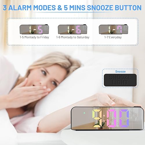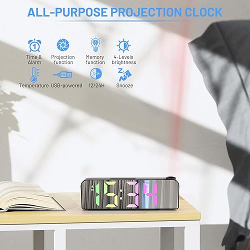 Luckits Reveil Projecteur Horloge Numérique LED Projection avec Température, Snooze, Mode Nuit, Affichage 12H/24H, Luminosité Réglable, pour Chambre, Bureau (Argent)