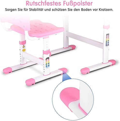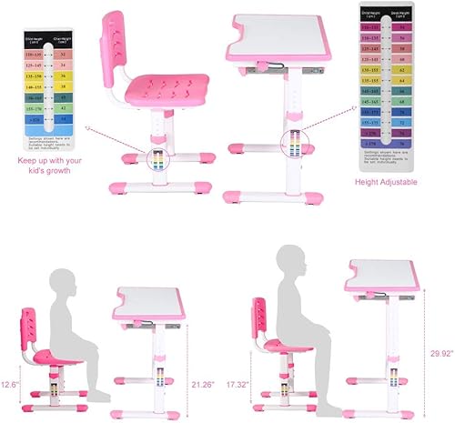 Bureau d'étude pour enfants à hauteur réglable, ensemble de chaise de bureau d'étude pour enfants Bureau d'étudiant avec support de lecture et lampe de protection des yeux pour garçons et filles(Rose)