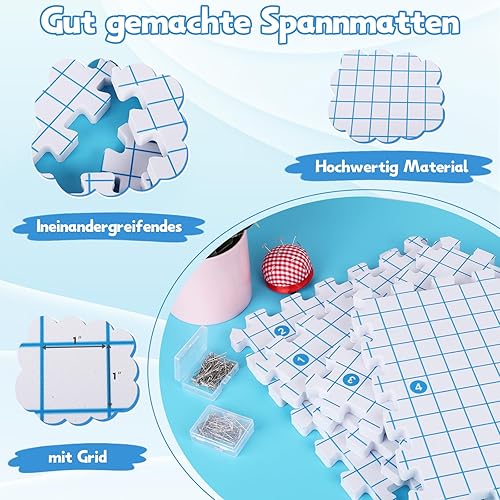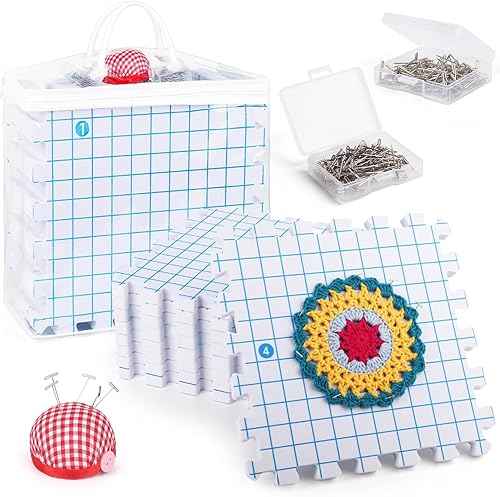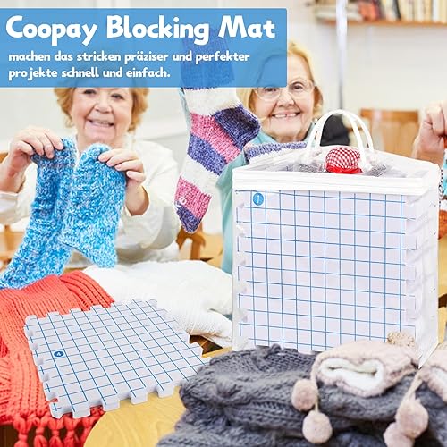 Coopay Lot de 9 tapis de tension avec grille - Tapis de serrage pour tricot - Avec 200 aiguilles en T - Tapis de blocage épais pour Granny Square - Pour travaux manuels, tricot, crochet, dentelle