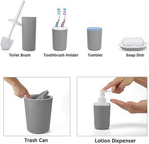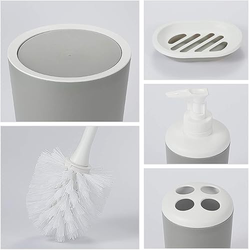 Hoomtaook Salle de Bain Accessoire Ensemble pour Bain Salle 6 Pièces Salle de Bain Accessoire Accessoires Salle de Bains Gris