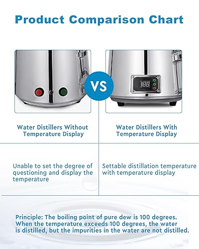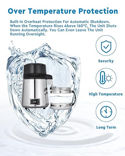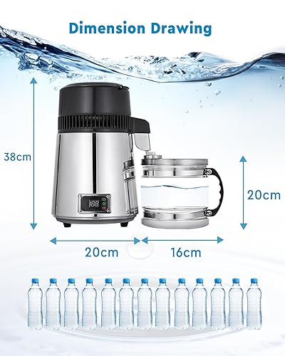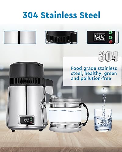 FoundGo Distillateur d'eau 750W Distillateur d'eau en acier inoxydable Distillateur d'eau pure avec pot en verre 1L/H, CE