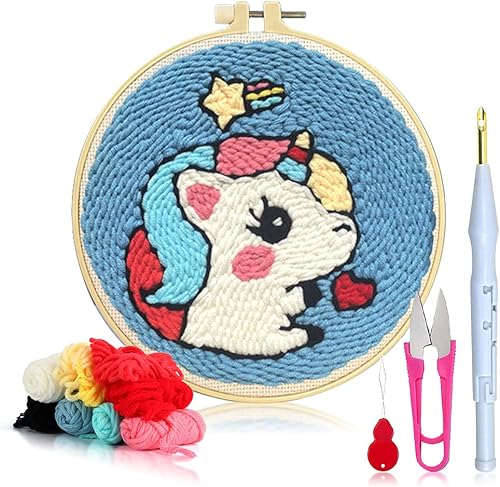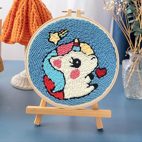 XiXiRan Kit de Démarrage de Broderie, Punch Needle Broderie Kit, Broderie d'Aiguille de Poinçon Kit Avec Instructions, pour la Décoration Intérieure pour Adultes Débutants (Licorne)