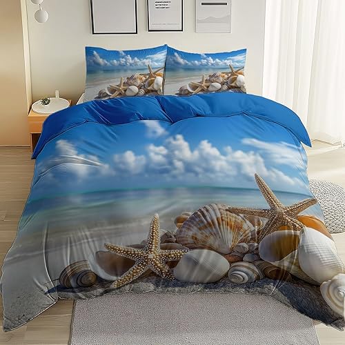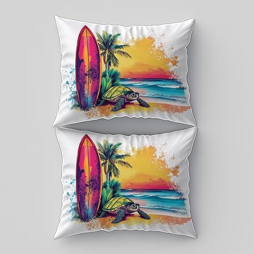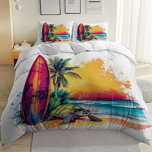 Couleur Duvet Cover with Zip thème, Plage Surf Dessin Animé Motif Reversible Brushed Microfibre Housse de Couette, 220 x 240 cm Bedding Set + 2 Pillowcase
