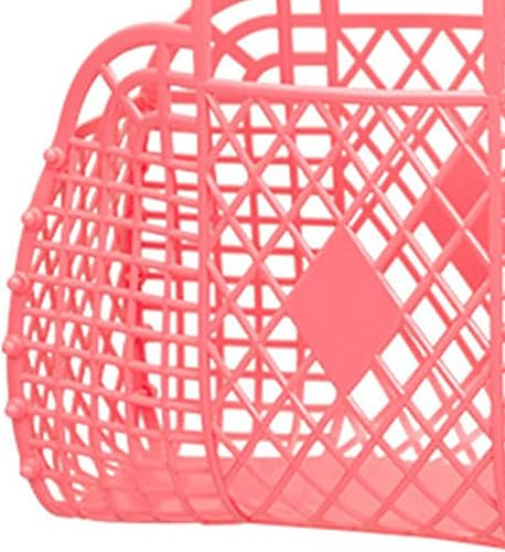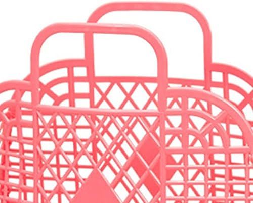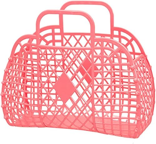 QSTNXB Sac de Plage, Sacs de Gelée Réutilisables, Sac à Main en Plastique Pliable Portable, Grand Panier de Rangement Creux, Panier Cadeau Avec Poignées, pour Enfants, Filles, Femmes(S-Rouge)