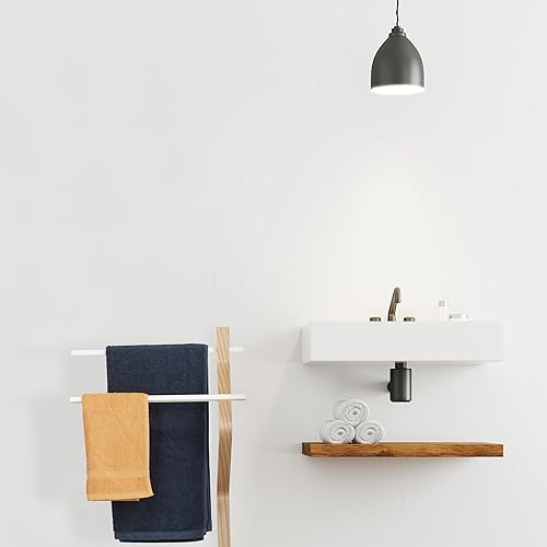Relaxdays Porte-Serviettes Autonome, Support à torchons avec 2 Barres, pour lavettes, Bois & métal, Blanc/Naturel