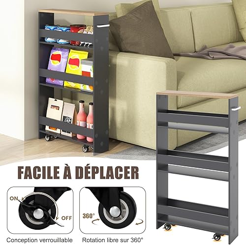 GOPLUS Chariot de Rangement de Cuisine à 4 Niveaux, 4 roulettes 360°, Étagère de Cuisine Polyvalente avec Poignée Latérale, pour Cuisine/Salle de Bain/Salon (Gris)