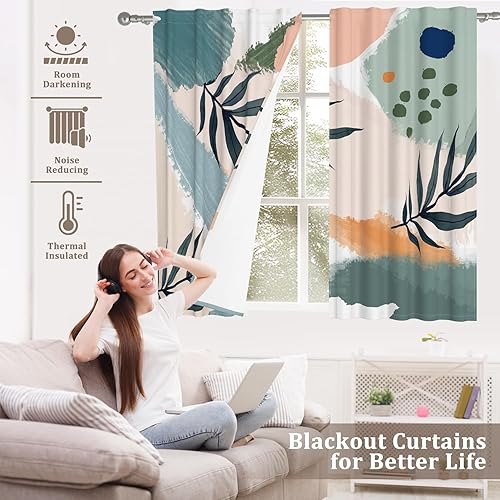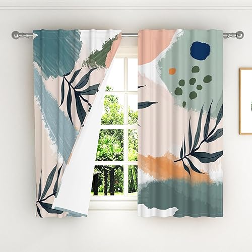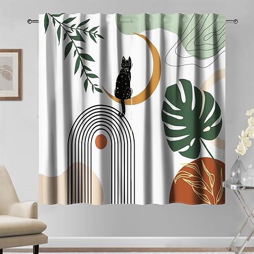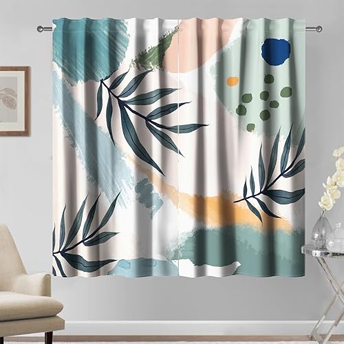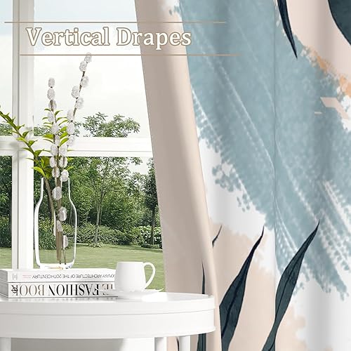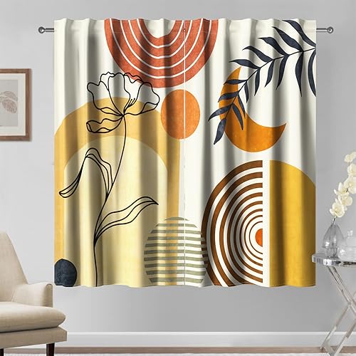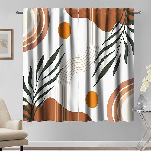 Kzzfqxb 140×229cm Rideaux d'art Moderne, Jaune Ocre Khaki Feuilles de Saule Beige Arc bohème rétro Classiques drapés 2 Panneaux, Drape de fenêtre pour Chambre Salon