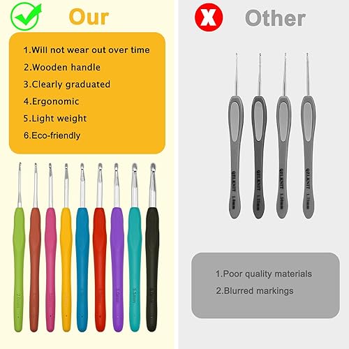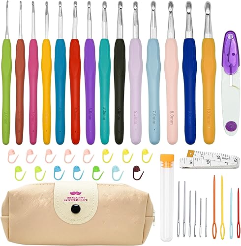 Gigmeta Lot de 14 Aiguilles à Crochet, Kit pour Adultes Débutants, Ensemble avec Poignées en Caoutchouc Ergonomiques, Cadeau Sœur