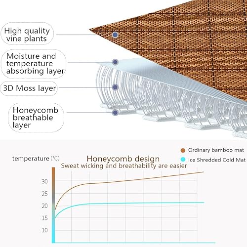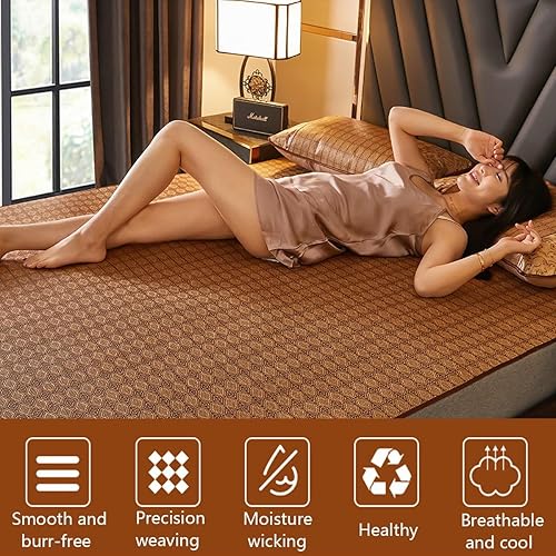Matelas d'été rafraîchissant Couverture de lit ra Tapis de couchage d'été, tapis de bambou pliable double face for lit, surmatelas de lit en bambou d'été, tapis de refroidissement en rotin, bambou car