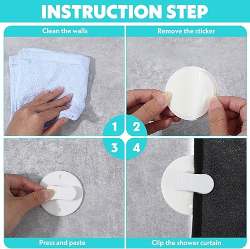 GEEHUA Lot de 6 clips de rideau de douche, autocollants pour rideau de douche, anti-éclaboussures, poids de rideau de bain, pour la maison, la baignoire intérieure, la baignoire intérieure