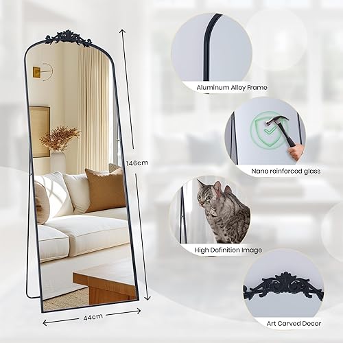 LunaMirror Filigree Miroir sur pied 162 x 52 cm Miroir pleine longueur avec vintage Sierlijke Gesneden Applicatie Rétro Décoration d'intérieur Miroir mural pour Woonkamer Slaapkamer Hal Entree, doré