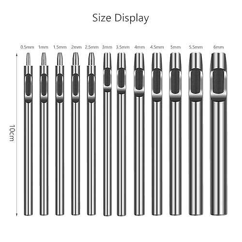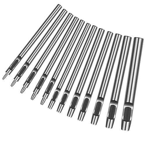 LAITER 12 Pcs Poinçon Creux en Cuir Kit d'Outil de Poinçonnage pour Maroquinerie Emporte-Pièce en Acier à Carbon pour Ceinture Bracelet Chaussures 12 Taille Différente
