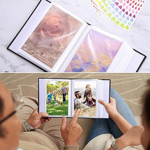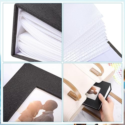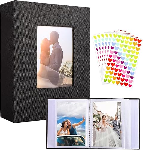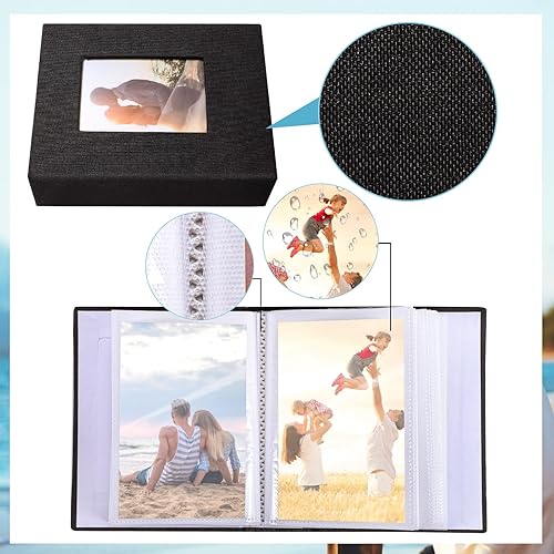 Album photo à pochettes 10 x 15 cm pour 100 photos à pochettes - Album photo pour photos de famille (couverture noir/lin)