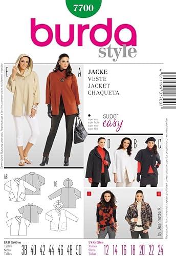Burda B7700 Patron de Couture Veste 19 x 13 cm