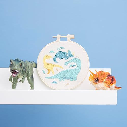 Simply Make Kit de broderie par numéros dinosaures - Kit de broderie pour adultes - Pour mur, décoration d'intérieur