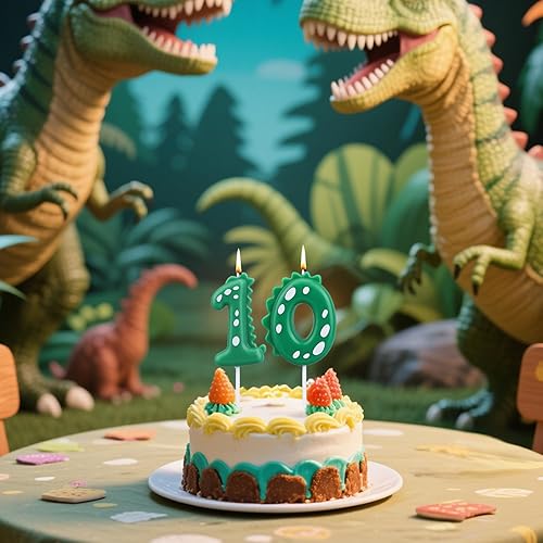 Dinosaur Bougie d'Anniversaire, Bougies Chiffres Vertes pour Décorations de Gâteau et Cupcakes Décorations de Fête Thème Dinosaure Fournitures d'Anniversaire pour Enfants Garçons (Chiffre 6)