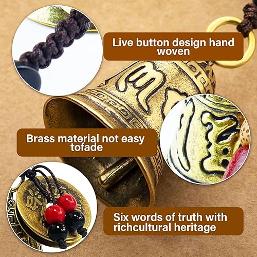 SDwfxd Lot de 2 cloches chinoises Feng Shui à six caractères - Cloche suspendue pour fenêtre et porte - Pour la maison - Porte-clés de voiture - Pour la sécurité de la richesse et la maison et le