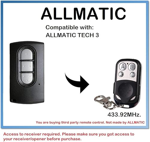Télécommande pour ALLMATIC B.RO WN BRO1WN, BRO 2WN, BRO4WN Rolling code 433.92MHz.