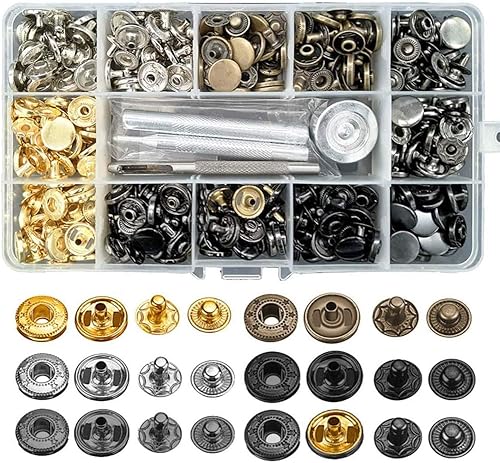Balfer Lot de 120 boutons pression en cuivre pour vêtements en métal bronze avec outil de fixation pour cuir, artisanat, veste, portefeuille, sac à main (6 couleurs, 12 mm)