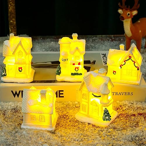 Village De Noel Lumineux Et Anime, Decoration Noel Interieur Table, Kit Maison Miniature Noel, Village Noel Miniature Led Maison, Deco Noel Accessoire Blanc Maison De Noël Lumineuse Veilleuse (A)