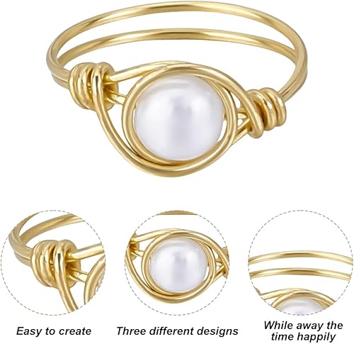 WEBEEDY Kit de Fabrication de Bagues en Fil de Perles pour Réalisation de 24 Sets de Bagues,Kit de Bagues en Fil de Perles avec Fils de Bijoux en Or,Mini Pince pour Adultes pour Fabrication de Bijoux