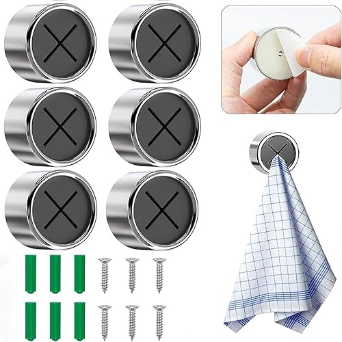 MIVORA Lot de 6 porte-torchons autocollants - Crochet rond - En ABS - Pour salle de bain, cuisine et maison