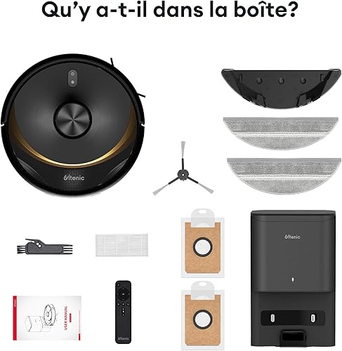 Ultenic T10 Elite Robot Aspirateur Laveur, Station Auto-Vidage, Navigation Lidar avec Cartographie, Connecté App et Alexa, Idéal pour Les Poils d'animaux, Cheveux, Poussière et Moquettes, Noir