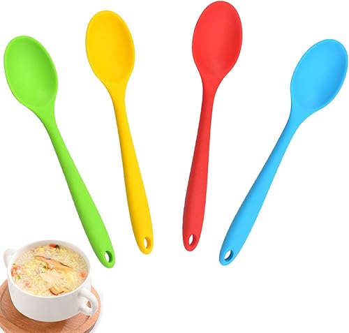 Hpamba Multicolore en Silicone Cuillère de Cuisine Antiadhésive en Silicone à Mélange Cuillère de Service de Cuisson en Résistant à la Chaleur Remuer Les Cuillères de Service pour la Cuisine 4 Pièces