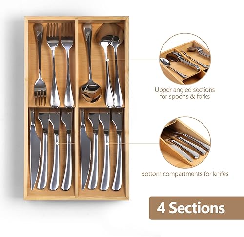 JSVER Range Couverts Tiroir Rangement Couvert Pour Tiroir Compact Plateau d'Ustensiles Tiroir Bambou Boîte à Couverts Organisateur de Tiroir Cuisine 35 x 20 x 5 cm (L x L x H) Couleur Bois