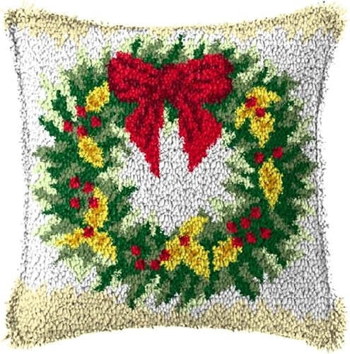 YOOTOM Kit de housse de coussin avec crochet à loquet en Noël,kit de broderie,kits de fabrication de taies d'oreiller,Christmas latch Hook Pillowcase Kits 43x43cm